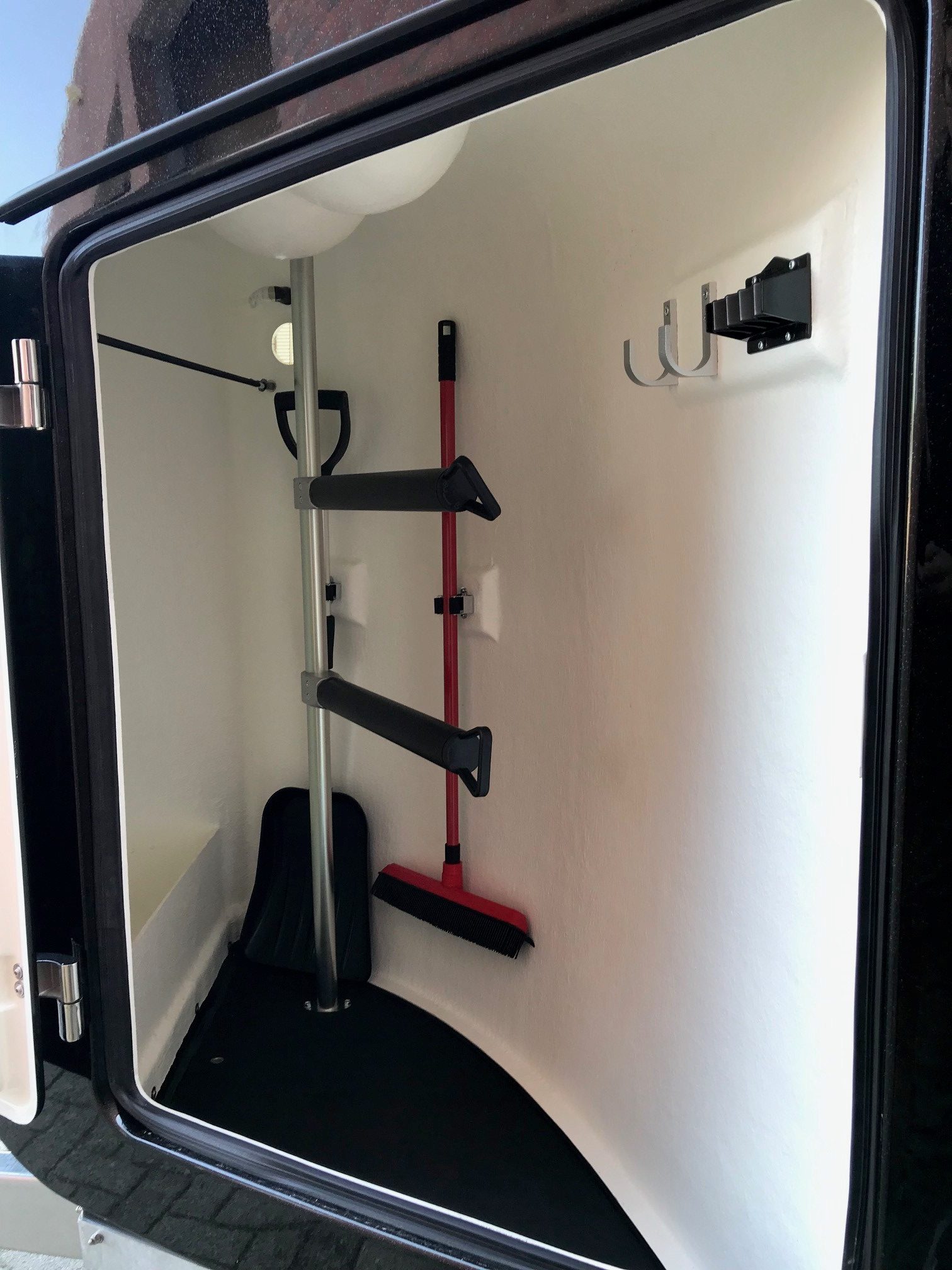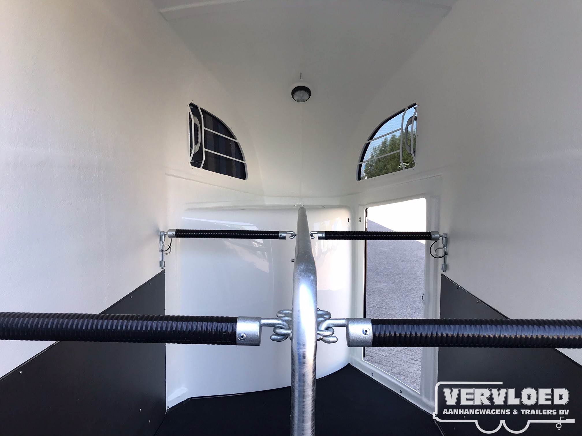 - Zadelkamer met voerbak, schep, deurnet, spiegel & uittrekbare en verstelbare zadelhouders